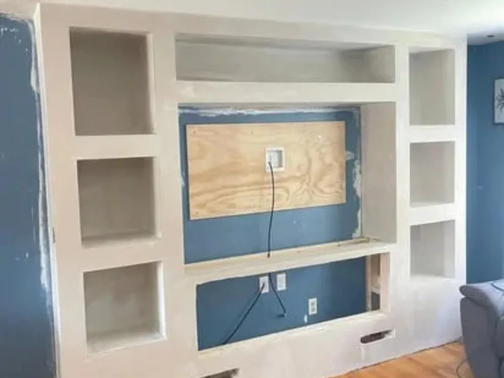 This project involved the construction of a built-in entertainment wall, designed to provide both