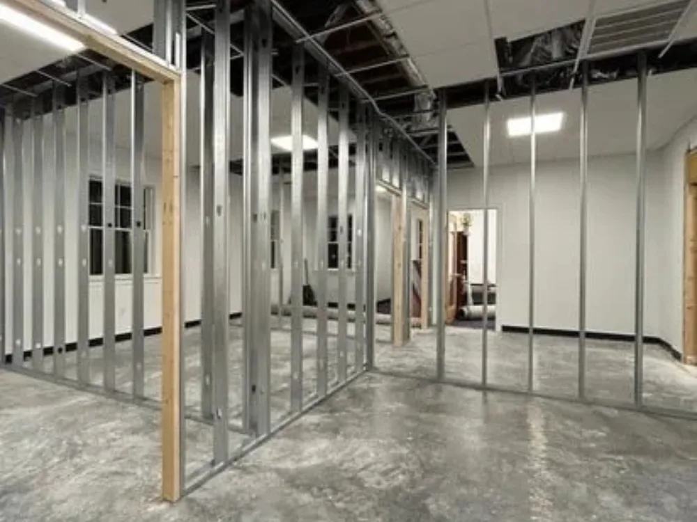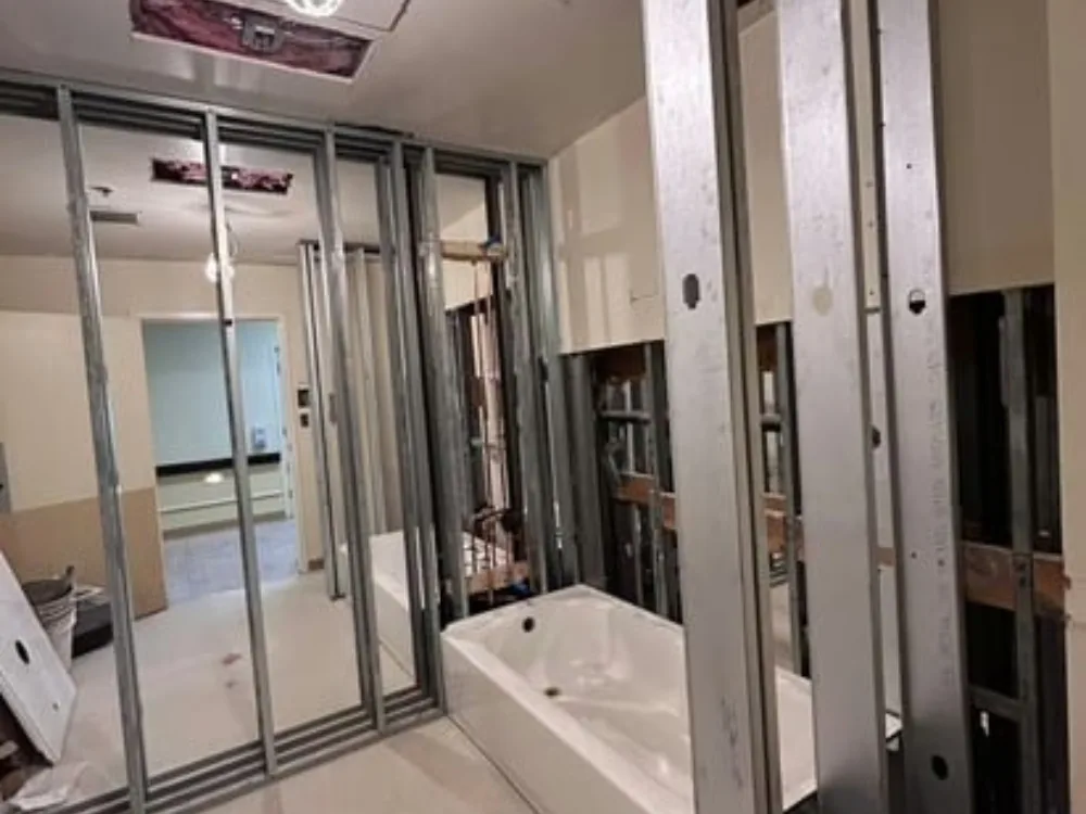 Our team completed the metal stud framing for a new bathroom layout, ensuring structural
