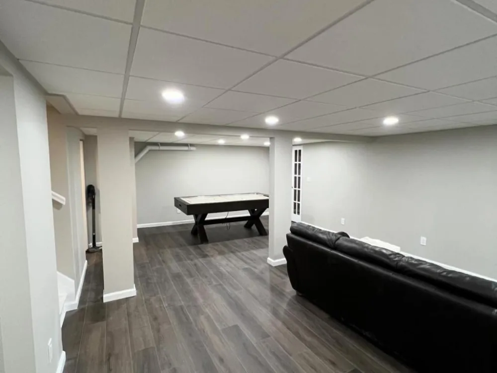 This project involved installing a drop ceiling in a finished basement, enhancing both the