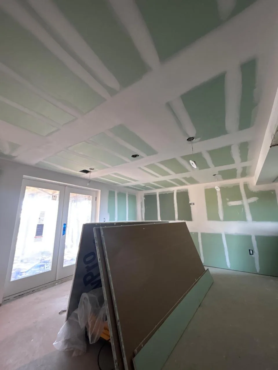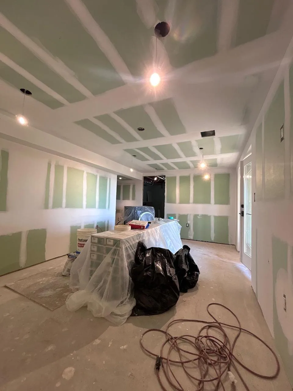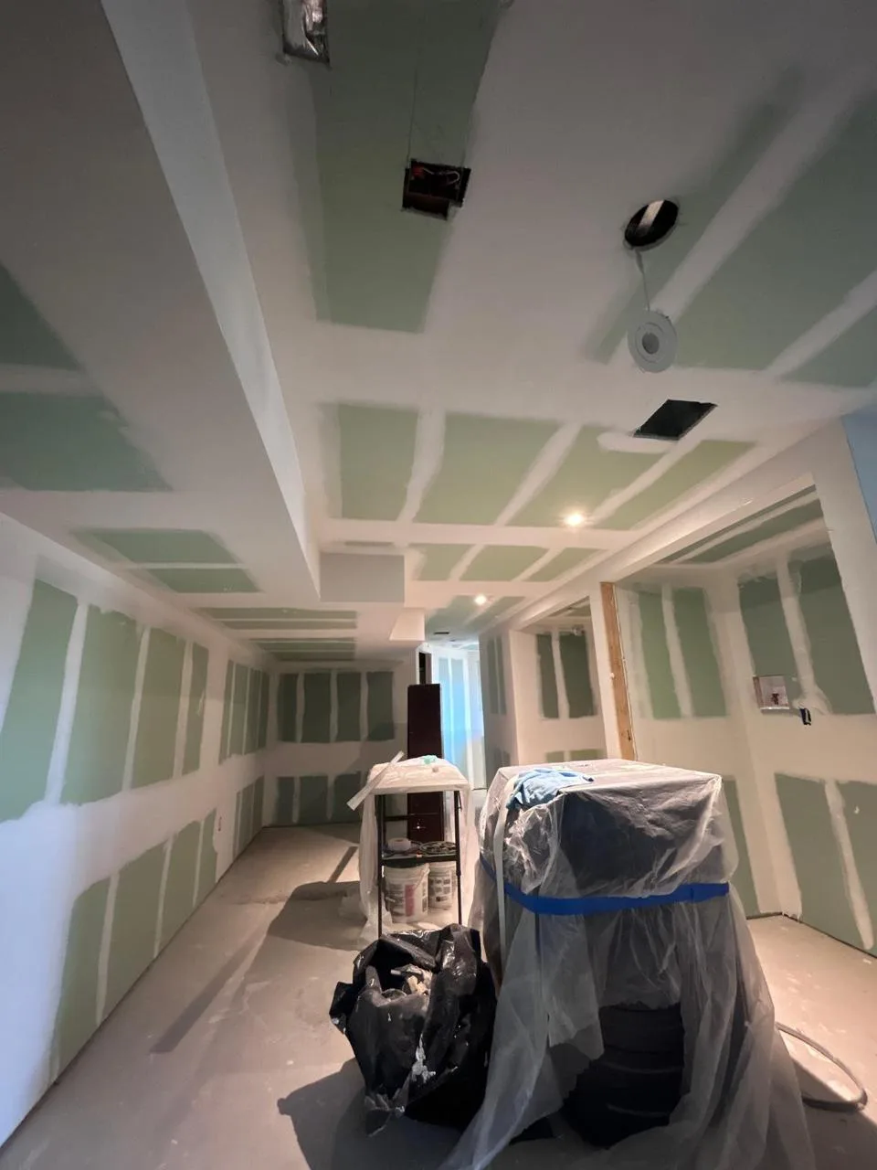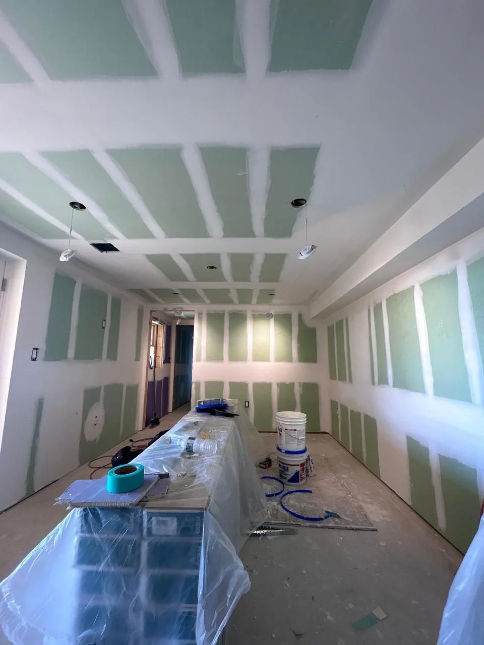 This project focused on expertly applying finish taping to create smooth, seamless walls and ceilings. The result is a flawless surface, ready for priming and painting, enhancing the overall look and durability of the space.