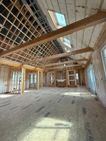 This project involved the installation of spray foam insulation in a residential structure under construction. As the framework and beams were exposed, the insulation process was applied to walls and ceilings to ensure maximum thermal efficiency and structural integrity. Consequently, this phase improved the building’s energy performance, reduced air leakage, and prepared the space for interior finishing. Additionally, skylights and framing reinforcements were carefully preserved to maintain natural lighting and support load distribution.