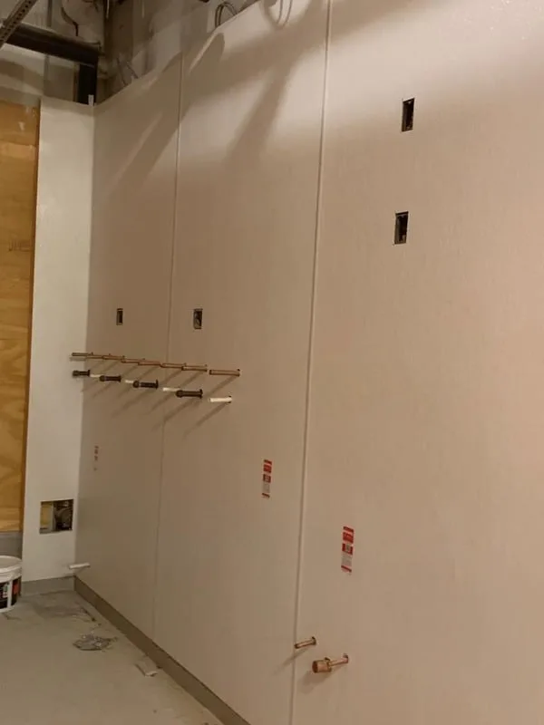 This project involved a complete wall utility installation designed for a technical or industrial facility. The work included the structured placement of electrical boxes, copper piping, and network cabling to support future systems integration. Moreover, all elements were organized to ensure accessibility and compliance with technical standards. As a result, the installation phase successfully prepared the area for the next stages of equipment and system implementation.